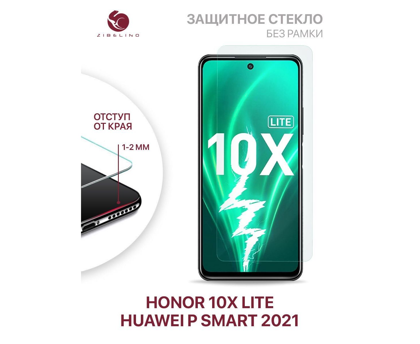 Защитное стекло для Honor 10X Lite, Huawei P Smart 2021 без рамки, с отступом от краев, Хонор 10Х Лайт Хуавей Р Смарт 2021