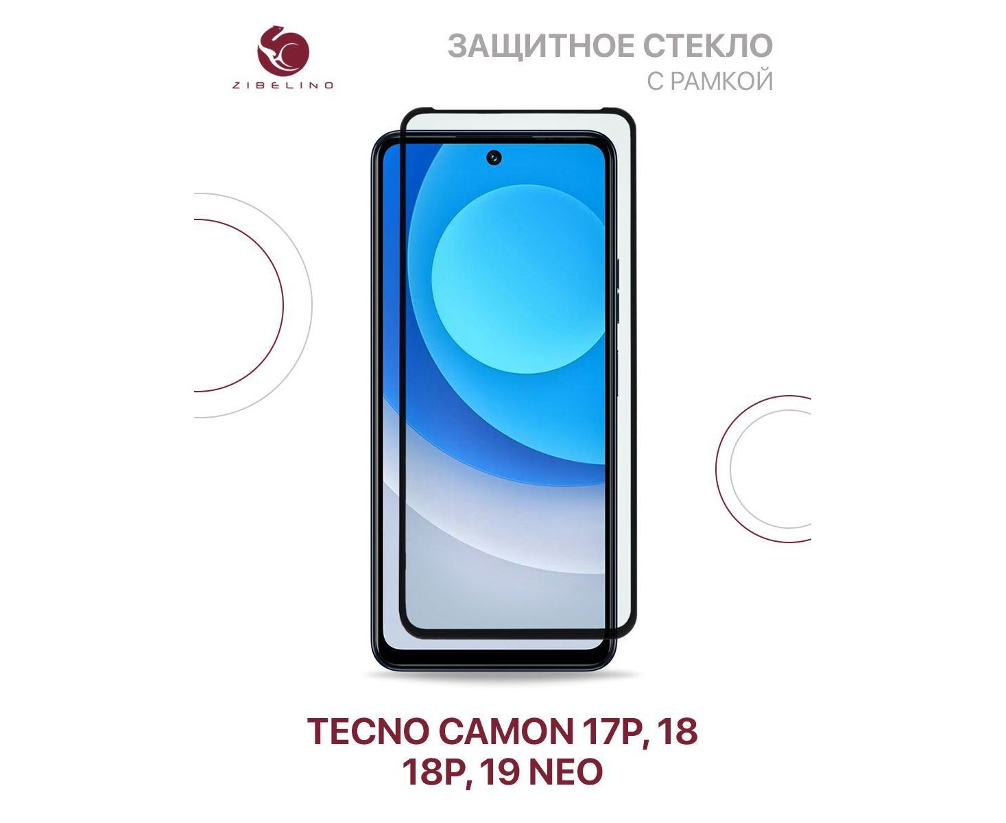 Защитное стекло для Tecno Camon 17P, 18, 18P, 19 Neo с рамкой, Текно Камон 17Р 18 18Р 19 Нео