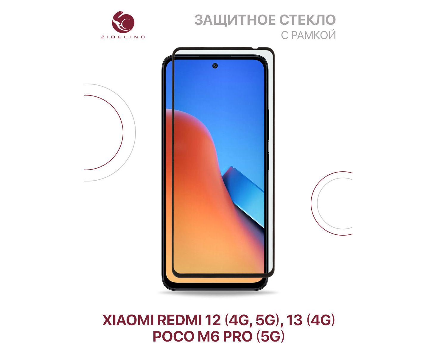 Защитное стекло для Xiaomi Redmi 12 (4G/5G) Redmi 13 (4G), Poco M6 (4G), Poco M6 Pro (5G) с рамкой