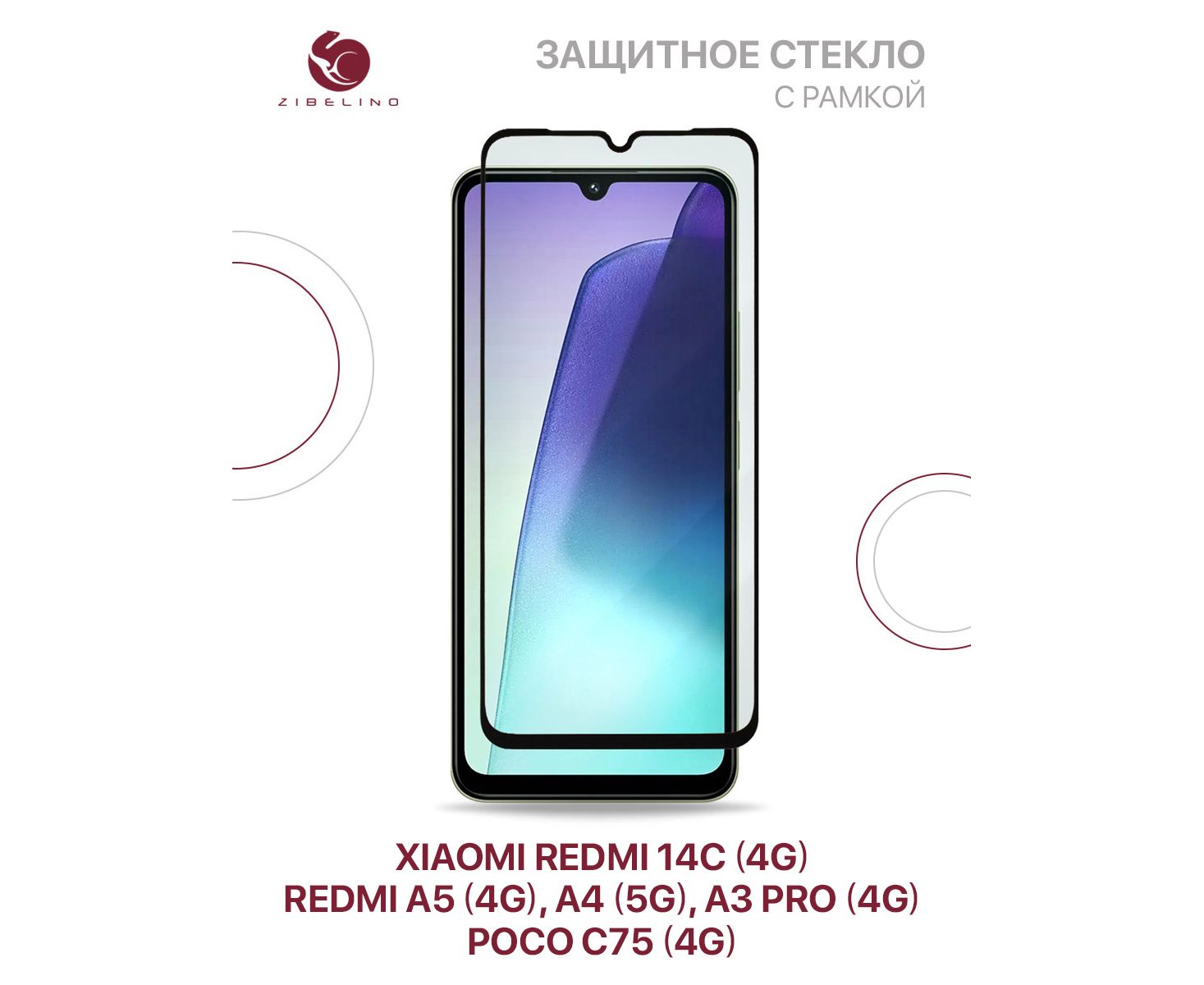 Защитное стекло для Xiaomi Redmi A5 (4G) 2025, 14C (4G), Poco C75 (4G), Redmi A3 Pro (4G), A4 (5G) с черной рамкой (Ксиоми Редми А5, 14C Поко С75, Редми А3 Про А4)