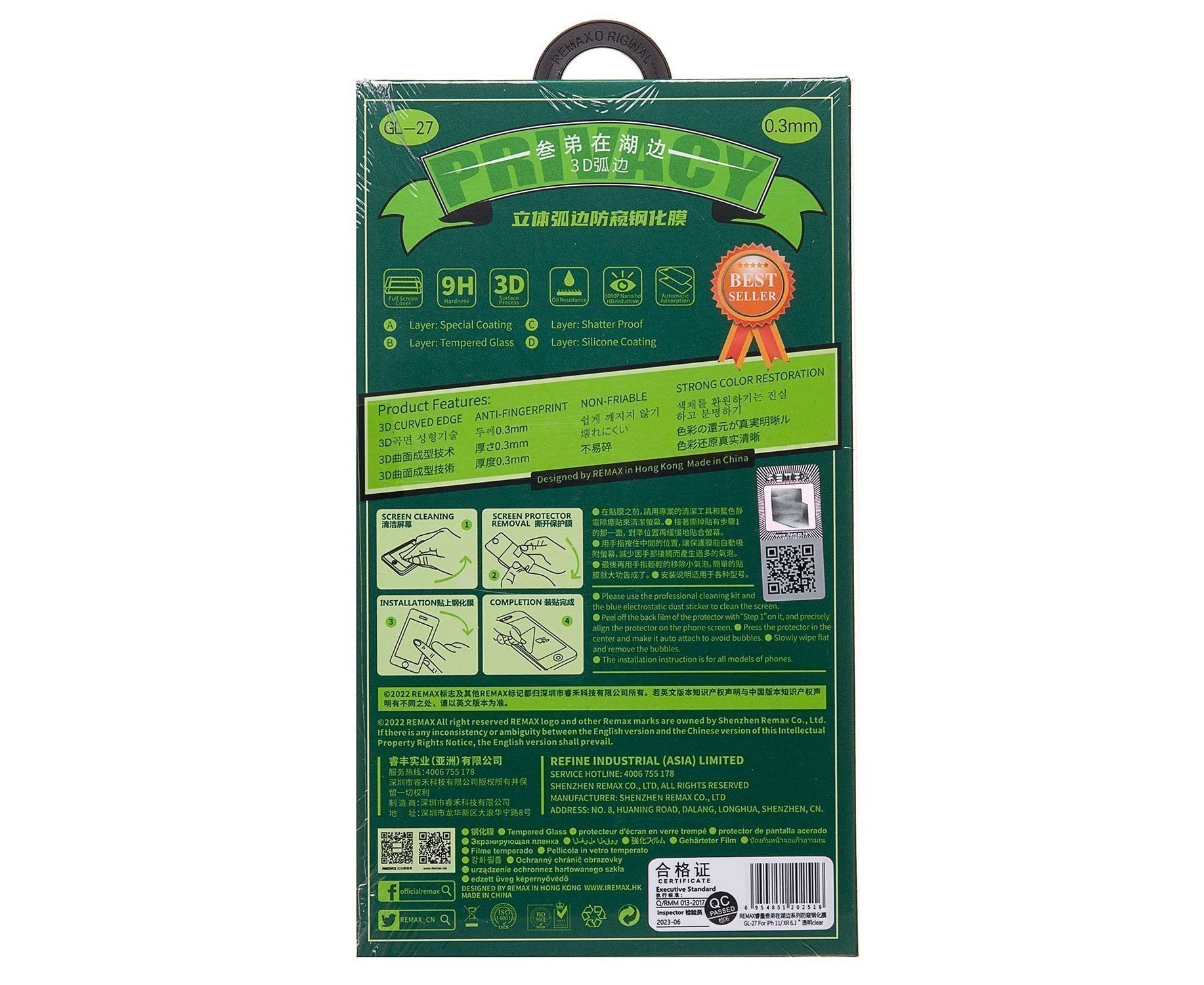 Защитное стекло Full Screen Remax Arcing Privacy GL-27 для "Apple iPhone 11/ iPhone XR" (bla(220104)
