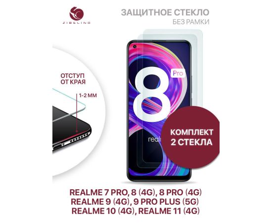 Защитное стекло (Комплект 2 шт) для Realme 7 Pro, 8 4G, 8 Pro 4G, 9 4G, 9 Pro Plus 5G, Realme 10 4G, 11 4G без рамки, с отступом от краев, Реалми 7 Про 8 Про 9 Про Плюс 5G 10 11