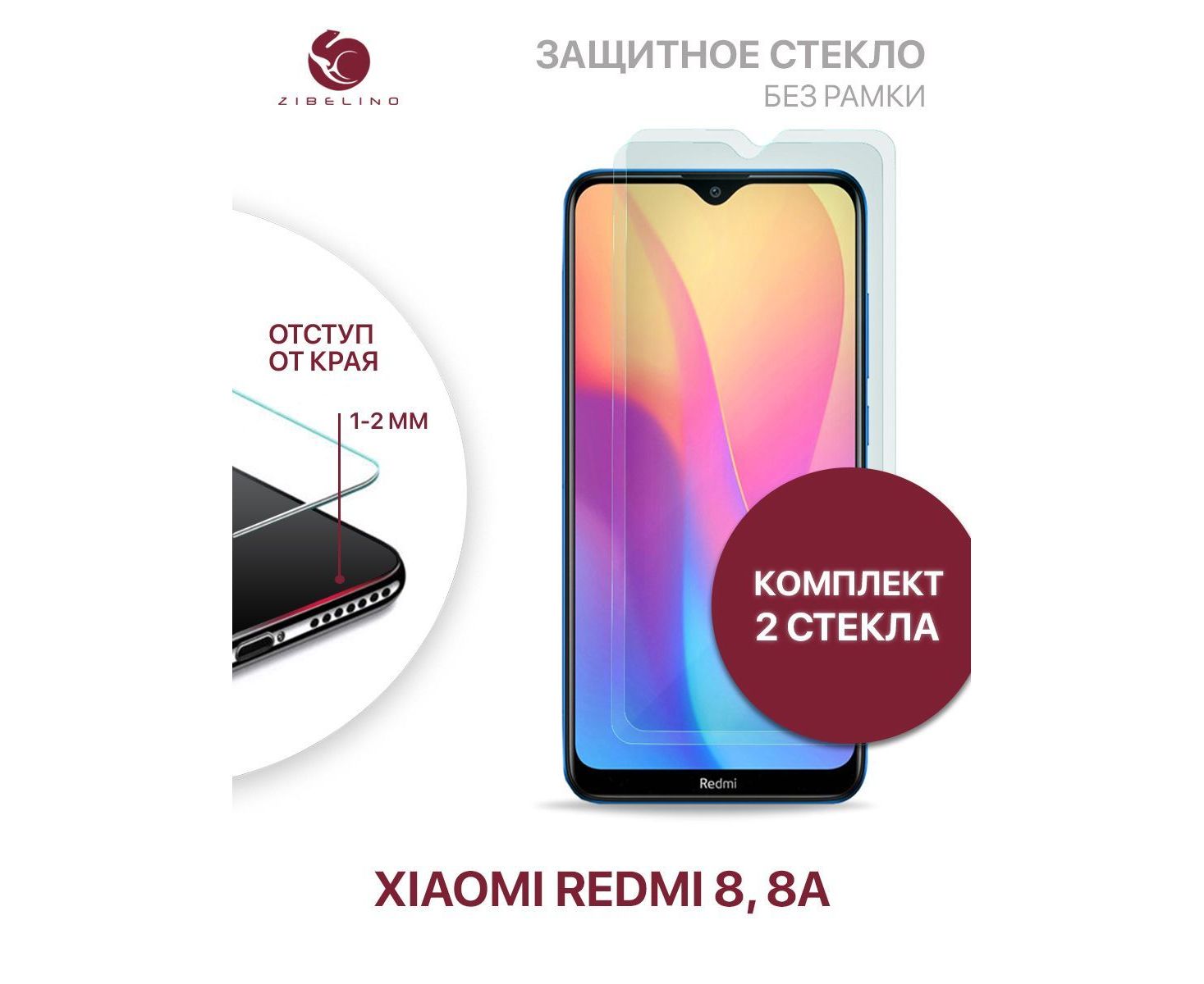 Защитное стекло (Комплект 2 шт) для Xiaomi Redmi 8, Xiaomi Redmi 8A без рамки, с отступом от краев, Сяоми Редми 8 8А