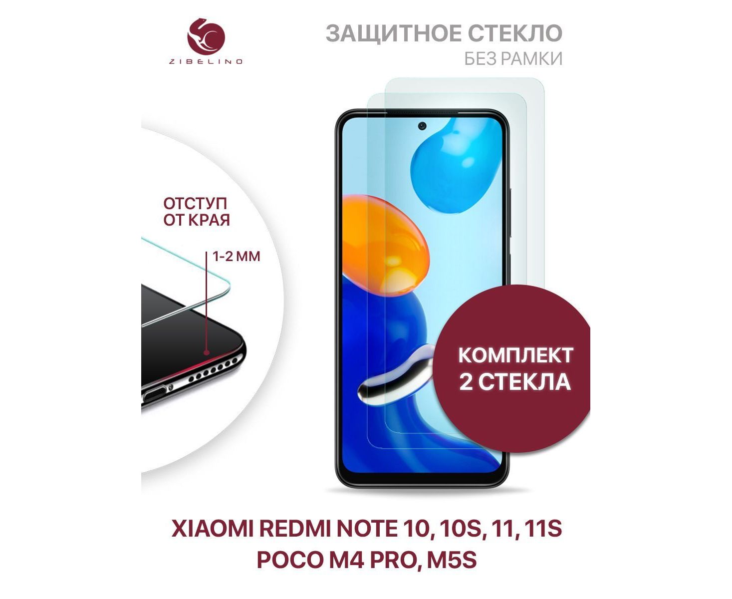 Защитное стекло (Комплект 2 шт) для Xiaomi Redmi Note 10, 10S, Xiaomi Redmi Note 11, 11S, Poco M4 Pro, Poco M5s без рамки, с отступом от краев, Сяоми Редми Нот 10 10S 11 11S Поко М4 Про М5s