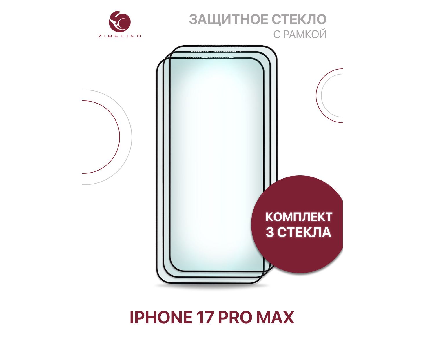Защитное стекло (Комплект 3) для iPhone 17 Pro Max с рамкой (Айфон 17 Про Макс)