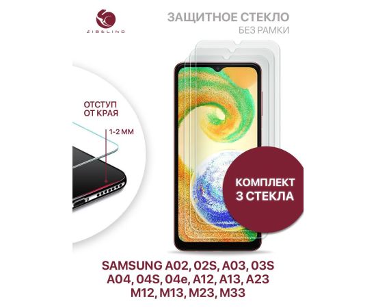 Защитное стекло (Комплект 3 шт) для Samsung Galaxy A02, 02s A03, 03s A04, 04s, 04e, A12 A13 A23 M12 M13 M23 M33 без рамки с отступом от краев, Самсунг Галакси А02 А03 04 А12 А13 А23 М12 М13 М23 М33