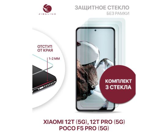 Защитное стекло (Комплект 3 шт) для Xiaomi 12T 5G, Xiaomi 12T Pro 5G, Poco F5 Pro 5G без рамки, с отступом от краев, Ксиоми 12Т Про F5 Про 5G
