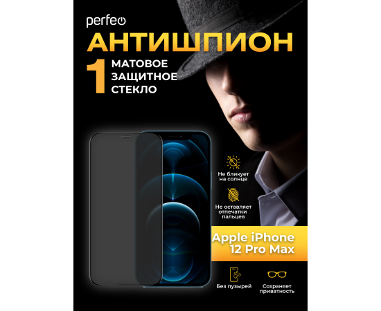 Защитное стекло матовое Антишпион тех пак Apple iPhone 12 Pro Max (6.7") черный
